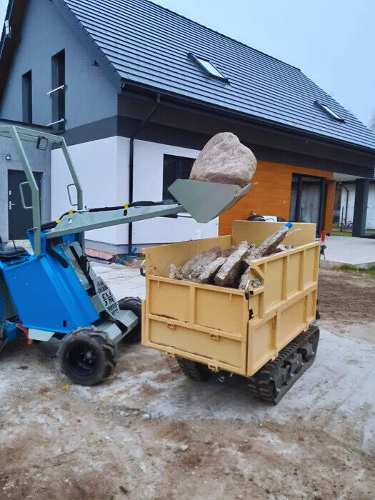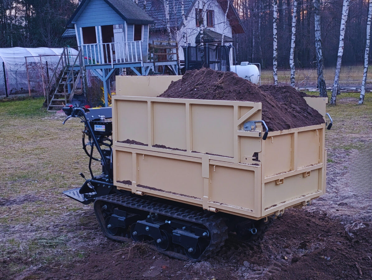 Wozidło idealnie współpracuje z minikoparką czy mini ładowarką, tworząc kompaktowy zestaw do prac ziemnych, transportowych i porządkowych.
