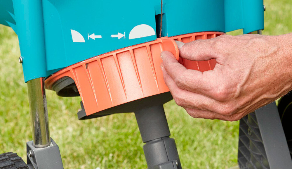 • Pokrywa tarczy obrotowej umożliwia rozrzut jednostronny (1,5–3 m), idealny przy krawędziach